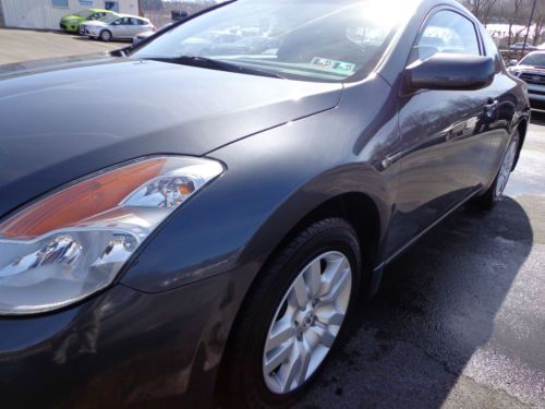 THE OWNER WILL RECEIVE THE REMAINDER OF THE 5 YEAR / 60,000 MILE NISSAN POWERTRAIN WARRANTY AND IS VALID FROM THE ORIGINAL PURCHASE DATE WHICH WAS JUNE 1ST, 2009. WE ALREADY COMPLETED ALL RECOMMENDED SERVICE INCLUDING OUR 160 POINT INSPECTION AND COMPLETED A FRESH OIL CHANGE AND NEW STATE INSPECTION FOR THE NEW OWNER! CONDITION WOW, WHAT A SHARP, CLEAN, 2009 NISSAN ALTIMA 2.5 S COUPE 2.5L 4 CYLINDER AUTOMATIC TRANSMISSION IN DARK SLATE METALLIC PAINT AND CHARCOAL FABRIC SEATS WITH ONLY 37,422 1-OWNER ORIGINAL MILES! NON-SMOKER VEHICLE AND INTERIOR IS FREE OF ANY ODORS OR MAJOR FLAWS. CLEAN TITLE AND CLEAN CARFAX REPORT WHICH WE HAVE ON HAND FOR ANYONE WHO WISHES TO VIEW THEM AND THE ENTIRE HISTORY REPORT CAN BE EMAILED UPON REQUEST. TIRES ARE ALSO EXCELLENT AND WELL OVER 85%. WE ALSO JUST SERVICED THIS NISSAN AND ALL RECOMMENDED SERVICE HAS BEEN COMPLETED. I WOULD PERSONALLY RATE THIS VEHICLE A 9 OUT OF 10. I COULD ONLY FAULT THIS ALTIMA FOR A FEW MINOR STONE CHIPS, A FEW LIGHT SCRATCHES, AND A SMALL DING ON THE PASSENGER DOOR AND I TRY TO POINT OUT ANY FLAWS IN THE VIDEO WHICH IS PROVIDED. I PERSONALLY TEST DROVE THIS NISSAN AND IT FEELS JUST LIKE A BRAND NEW VEHICLE. WE JUST COMPLETED A NEW PA STATE INSPECTION ALONG WITH A FRESH OIL CHANGE AND DETAIL ALONG WITH A FRESH INSPECTION AND SERVICE. IF YOU ARE SEARCHING FOR A CLEAN, WELL MAINTAINED NISSAN ALTIMA 2.5 S COUPE AND IN A GREAT COLOR, THIS IS YOUR NEW CAR! THANK YOU FOR VIEWING AND BE SURE TO VIEW ALL 24 PHOTOS AND THE CARFAX REPORT ALSO INCLUDED WITH THIS LISTING AND ONLY 37,422 1-OWNER ORIGINAL MILES!!!!! CARFAX REPORT