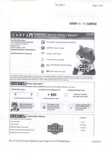 2013 Nissan Altima Only 1485 Miles Free Delivery To Your Home Factory Warranty on 2040-cars