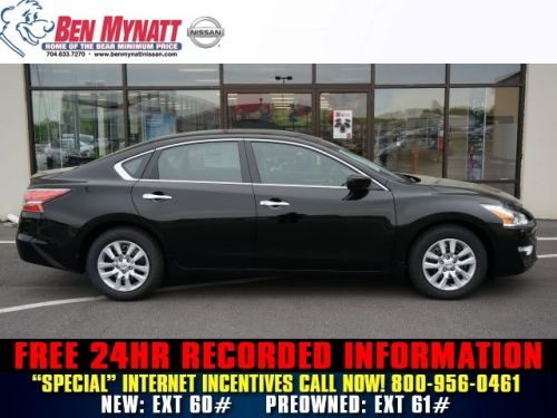 FUEL EFFICIENT 38 MPG Hwy/27 MPG City! 2.5 S trim, Super Black exterior and Charcoal interior. CD Player, [B10] SPLASH GUARDS, [L92] FLOOR MATS W/O TRUNK MAT (4 PIE..., Overhead Airbag, Bluetooth, iPod/MP3 Input, Brand New. AND MORE!======KEY FEATURES INCLUDE: iPod/MP3 Input, Bluetooth, CD Player. MP3 Player, Keyless Entry, Remote Trunk Release, Steering Wheel Controls, Child Safety Locks. ======OPTION PACKAGES: SPLASH GUARDS, FLOOR MATS W/O TRUNK MAT (4 PIECE): Carpeted. 2.5 S with Super Black exterior and Charcoal interior features a 4 Cylinder Engine with 182 HP at 6000 RPM*. Brand New. ======EXPERTS REPORT: Edmunds.com explains The Altima feels more focused and responsive than many rivals do, yet it doesn't beat you up over bumps.. Great Gas Mileage: 38 MPG Hwy. ======WHO WE ARE: Visit us Today! Dealer Award Winner for outstanding sales and service in the Charlotte region. We are one of North Carolina's Largest Certified Nissan Dealers. Our team is professional, offers you a no-pressure environment and operates with the quality you expect. Price includes all applicable rebates in lieu of special NMAC finance rates and may be based on purchaser's zip code at the time of purchase. Prices do not include taxes, tag, and $589 administrative fee. Horsepower calculations based on trim engine configuration. Fuel economy calculations based on original manufacturer data for trim engine configuration. Please confirm the accuracy of the included equipment by calling us prior to purchase.