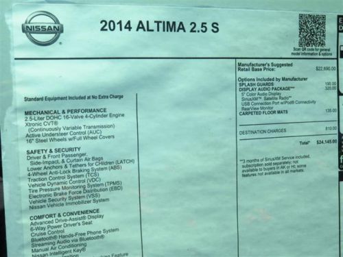 The 2014 Nissan Altima is a car that must be experienced. Its dramatic curves, gorgeously sculpted steel and wide stance adds up to form a car that is exciting to drive, extremely aerodynamic, and slices through the air with ease. Nissan gives you seven tempting Altima trims to choose from starting with the base 2.5 all the way up to the top-of-the-line 3.5 SL. The 2.5 models all share a 2.5-Liter 4-Cylinder engine with 182 Horsepower that gets an EPA estimated 27 MPG City and 38 MPG Highway. The 3.5 Models on the other hand deliver a thrilling 270 Horsepower from a more powerful 3.5-Liter V6, and get an EPA estimated 31 MPG highway. All models come standard equipped with the amazing Xtronic CVT transmission. Inside the 2014 Altima, the cabin is spacious, modern and notably upscale with high-end materials and soft lines. For comfort, Nissan developed extremely comfortable front seats that are not only supportive, their cushions also flex in accordance with your pressure points, to help reduce fatigue while driving. The Altima comes standard with power door locks, push-button start, and an AM FM CD radio with an auxiliary input. Also, you get Bluetooth wireless music streaming and hands-free calling when used with a compatible phone. Not to be overlooked is the Advanced Drive-Assist Display between the speedometer and tachometer. Depending on the trim level and how your Altima is equipped, the display can show you such things as caller ID, turn-by-turn navigation, low tire pressure alerts, and lane departure warnings directly in front of you reducing the time you have to look away. SV and SL trims have the option of purchasing the available Technology Package. It gives you Lane Departure Warning, Blind Spot Warning and Moving Object Detection, as well as the Nissan Navigation System with voice recognition and a 7-inch touchscreen monitor. For Safety, all 2014 Altimas come with Anti-lock brakes, Traction Control, Zone Body construction, and 6 airbags. Wesley Chapel Nissan offers a great selection of cars, trucks, and sport utilities. Our Internet Pricing policy offers low prices, plus we offer a wide variety of financing terms. Call our Internet Sales Team @ 866-913-9478 day or night ! Print this page out and present to a Internet Sales Team member and get a extra $250.00 off!