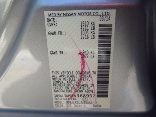 VIN (Vehicle Identification Number): 1N4AL3APXEN368937