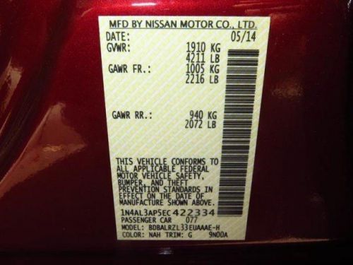 VIN (Vehicle Identification Number): 1N4AL3AP5EC422334