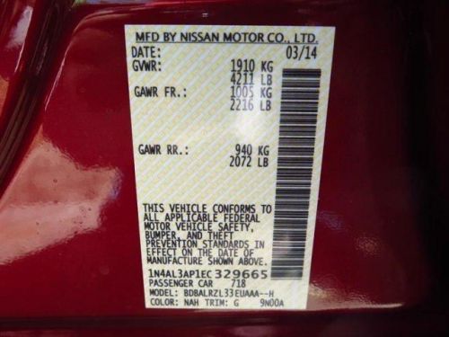 VIN (Vehicle Identification Number): 1N4AL3AP1EC329665