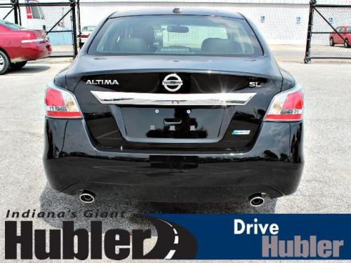 Sunroof, Heated Leather Seats, Bluetooth, iPod/MP3 Input, Dual Zone A/C, Remote Engine Start, Satellite Radio, [B10] SPLASH GUARDS. FUEL EFFICIENT 38 MPG Hwy/27 MPG City! 2.5 SL trim, Super Black exterior and Charcoal interior CLICK NOW!======KEY FEATURES INCLUDE: Heated Driver Seat, Back-Up Camera, Premium Sound System, Satellite Radio, iPod/MP3 Input, Bluetooth, Remote Engine Start, Dual Zone A/C, Heated Seats MP3 Player, Aluminum Wheels, Keyless Entry, Remote Trunk Release, Child Safety Locks. ======OPTION PACKAGES: MOONROOF PACKAGE, FLOOR MATS PLUS TRUNK MAT (5 PIECE): Carpeted, SPLASH GUARDS, CHARCOAL, LEATHER-APPOINTED SEAT TRIM, SUPER BLACK. 2.5 SL with Super Black exterior and Charcoal interior features a 4 Cylinder Engine with 182 HP at 6000 RPM*. One Year No Charge Oil Changes. ======VEHICLE REVIEWS: The Altima feels more focused and responsive than many rivals do, yet it doesn't beat you up over bumps. -Edmunds.com. Great Gas Mileage: 38 MPG Hwy. ======VISIT US TODAY: After more than 50 years in business, The Hubler Auto Group, through the power of ten central Indiana locations, has literally sold hundreds of thousands of vehicles and is one of the oldest and most prolific auto dealers in the State employing 550 people. The Hubler Auto Group can claim the title for selling more G.M. vehicles in the State of Indiana than any other dealer or dealer group, and has earned the right to brag of having the largest and most loyal customer Horsepower calculations based on trim engine configuration. Fuel economy calculations based on original manufacturer data for trim engine configuration. Please confirm the accuracy of the included equipment by calling us prior to purchase. Hubler Nissan is committed to providing the finest automotive ownership experience through superior customer service. Let us make you a "Customer for life". We have 99% Guaranteed Credit Approval! For more details or to schedule an appointment, call us at 888-548-9398.