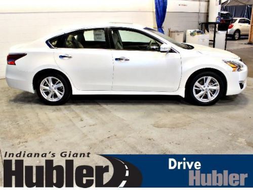 Heated Leather Seats, Auxiliary Audio Input, Satellite Radio, Bluetooth Connection, Multi-Zone A/C, Remote Engine Start, Premium Sound System. EPA 38 MPG Hwy/27 MPG City! Pearl White exterior and Beige interior, 2.5 SL trim CLICK NOW!======KEY FEATURES INCLUDE: Heated Front Seat(s), Back-Up Camera, Premium Sound System, Satellite Radio, Auxiliary Audio Input, Bluetooth Connection, Remote Engine Start, Multi-Zone A/C. MP3 Player, Aluminum Wheels, Remote Trunk Release, Keyless Entry, Child Safety Locks. ======OPTION PACKAGES: TECHNOLOGY PACKAGE: Moving Obstacle Detection (MOD), Compass moves from rear view mirror to navigation screen, Blind Spot Warning (BSW), Nissan Navigation System, 7 color display, turn-by-turn navigation integration into Advanced Drive Assist Display, steering wheel navigation system controls, NavTraffic and NavWeather, POIs powered by Google, Google Local Search and Google Send to Car, Lane Departure Warning (LDW), MOONROOF PACKAGE, EXTERNAL GROUND LIGHTING, FLOOR MATS PLUS TRUNK MAT (5 PIECE): Carpeted, TRUNK SUB FLOOR ORGANIZER & KITS, BEIGE, LEATHER-APPOINTED SEAT TRIM, PEARL WHITE. 2.5 SL with Pearl White exterior and Beige interior features a 4 Cylinder Engine with 182 HP at 6000 RPM*. ======EXPERTS ARE SAYING: Edmunds.com explains The Altima feels more focused and responsive than many rivals do, yet it doesn't beat you up over bumps.. Great Gas Mileage: 38 MPG Hwy. ======BUY FROM AN AWARD WINNING DEALER: After more than 50 years in business, The Hubler Auto Group, through the power of ten central Indiana locations Horsepower calculations based on trim engine configuration. Fuel economy calculations based on original manufacturer data for trim engine configuration. Please confirm the accuracy of the included equipment by calling us prior to purchase. Hubler Nissan is committed to providing the finest automotive ownership experience through superior customer service. Let us make you a "Customer for life". We have 99% Guaranteed Credit Approval! For more details or to schedule an appointment, call us at 888-548-9398.