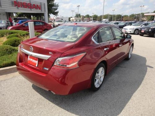 Heated Leather Seats, Remote Engine Start, Multi-Zone A/C, Back-Up Camera, Aluminum Wheels, Head Airbag, Premium Sound System. 2.5 SL trim, Cayenne Red Metallic exterior and Beige interior. FUEL EFFICIENT 38 MPG Hwy/27 MPG City! SEE MORE!======KEY FEATURES INCLUDE: Leather Seats, Heated Front Seat(s), Back-Up Camera, Premium Sound System, Satellite Radio, Auxiliary Audio Input, Bluetooth Connection, Aluminum Wheels, Remote Engine Start, Multi-Zone A/C MP3 Player, Keyless Entry, Remote Trunk Release, Child Safety Locks, Steering Wheel Audio Controls. 2.5 SL with Cayenne Red Metallic exterior and Beige interior features a 4 Cylinder Engine with 182 HP at 6000 RPM*. ======EXPERTS RAVE: The Altima feels more focused and responsive than many rivals do, yet it doesn't beat you up over bumps. -Edmunds.com. Great Gas Mileage: 38 MPG Hwy. Horsepower calculations based on trim engine configuration. Fuel economy calculations based on original manufacturer data for trim engine configuration. Please confirm the accuracy of the included equipment by calling us prior to purchase.
