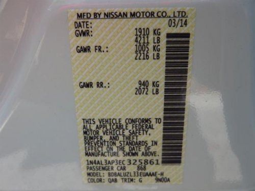 VIN (Vehicle Identification Number): 1N4AL3AP3EC325861