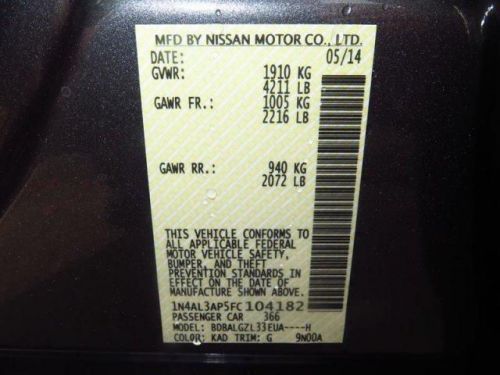 VIN (Vehicle Identification Number): 1N4AL3AP5FC104182