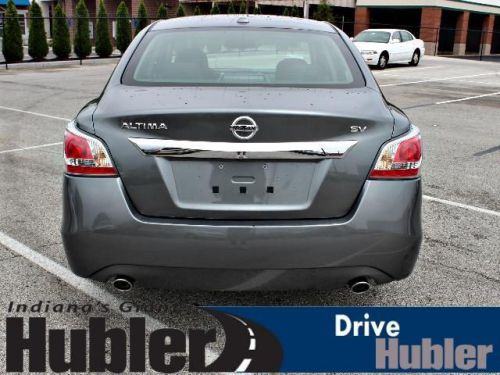 NAV, Sunroof, iPod/MP3 Input, Bluetooth, CD Player, Dual Zone A/C, Remote Engine Start, Satellite Radio, [B10] SPLASH GUARDS. 2.5 SV trim, Gun Metallic exterior and Charcoal interior. FUEL EFFICIENT 38 MPG Hwy/27 MPG City! CLICK NOW!======KEY FEATURES INCLUDE: Back-Up Camera, Satellite Radio, iPod/MP3 Input, Bluetooth, CD Player, Remote Engine Start, Dual Zone A/C. MP3 Player, Aluminum Wheels, Keyless Entry, Remote Trunk Release, Child Safety Locks. ======OPTION PACKAGES: CONVENIENCE PACKAGE: rear passenger A/C vents, and mood lamp in roof console, Auto-Dimming Rear View Mirror, Manual Folding Outside Mirrors, LED turn signals, HomeLink Universal Transceiver, Power Sliding Moonroof w/Tilt, Compass, Side Cargo Net, Front Passenger Window w/1-Touch Auto-Up/Down, auto reverse feature, TECHNOLOGY PACKAGE: Moving Obstacle Detection (MOD), Compass moves from rear view mirror to navigation screen, Blind Spot Warning (BSW), Nissan Navigation System, 7 color display, turn-by-turn navigation integration into Advanced Drive Assist Display, steering wheel navigation system controls, NavTraffic and NavWeather, POIs powered by Google and Google Send to Car Services, Lane Departure Warning (LDW), FLOOR MATS PLUS TRUNK MAT (5 PIECE): Carpeted, SPLASH GUARDS, GUN METALLIC, CHARCOAL, CLOTH SEAT TRIM. 2.5 SV with Gun Metallic exterior and Charcoal interior features a 4 Cylinder Engine with 182 HP at 6000 RPM*. ======VEHICLE REVIEWS: Great Gas Mileage: 38 MPG Hwy. ======WHO WE ARE: After more than 50 years in business, The Hubler Auto Group, through the power of ten central Indiana locations Horsepower calculations based on trim engine configuration. Fuel economy calculations based on original manufacturer data for trim engine configuration. Please confirm the accuracy of the included equipment by calling us prior to purchase. Hubler Nissan is committed to providing the finest automotive ownership experience through superior customer service. Let us make you a "Customer for life". We have 99% Guaranteed Credit Approval! For more details or to schedule an appointment, call us at 888-548-9398.