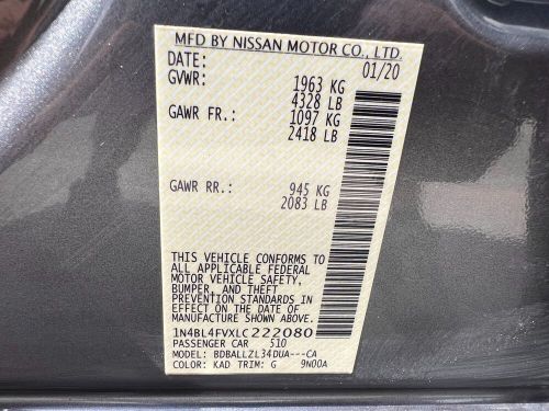 VIN (Vehicle Identification Number): 1N4BL4FVXLC222080