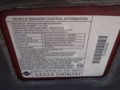 No Reserve 2003 Nissan Altima 2.5 S Sedan 2.5l 4-cyl Auto One Owner on 2040-cars