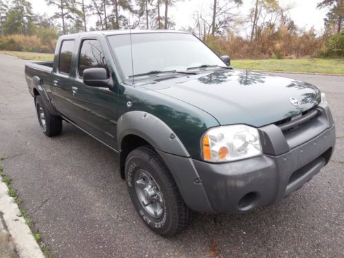 FOR SALE IS AN ALPINE GREEN METALLIC ON TAN 2002 NISSAN FRONTIER XE CREW CAB WITH 159K MILES! IT COMES WITH A CLEAN HISTIRY REPORT(SEE ATTACHED) AND IS MECHANICALLY SOUND WITH ALL RECENT SERVICE COMPLETED INCLUDING FRESH OIL CHANGE. THE EXTERIOR IS FREE OF ANY DENTS/ DINGS AND IS IN GREAT SHAPE WITH NO MAJOR SCRATCHES. THE INTERIOR IS FREE OF ANY STAINS OR RIPS IN THE SEATS. THIS VEHICLE HAS BEEN WELL CARED FOR AND THE PHOTOS SHOW IT. IT HAS THE DEALER INSTALLED BEDLINER. THE TIRES ARE IN GOOD SHAPE AND OVERALL, THIS VEHICLE SHOWS VERY WELL. PLEASE FEEL FREE TO CONTACT US AT 706-737-1148 WITH ANY QUESTIONS. WE OFFER EXTENDED WARRANTY PRODUCTS AND WILL ASSIST THE BUYER WITH NATIONWIDE SHIPPING MAKING THIS A HASSLE FREE BUYING EXPERIENCE!