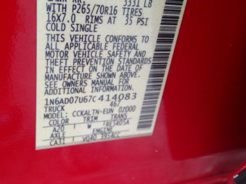 Hello, you are bidding on a damaged 2007 Nissan Frontier with 71,707 miles. Vehicle runs and drives great and can be used daily in it's current condition. The vehicle sustained damage to both sides of the vehicle, both left side doors, left bedside and right front door have damage to them but should be able to be repaired. Nice clean interior with no warning lights. Vehicle will need the following parts right headlight, right rear door, right bedside, left fender, left taillight, front bumper assembly and mounting hardware. Parts are available at Car-part or www.ebay.com. The vehicle is available for inspection. Please feel free to contact me at 502-817-2972 with any questions you may have. The vehicle is being sold as is damaged with salvage title. Vehicle is being sold as is.The hood also has some minor damage on that will need to be repaired. Please inspect photos and ask questions if needed. Not liable for missed damaged items or damaged parts we could not see. The frame rails on the vehicle appear to be ok, no signs of impact to them. Engine runs great and the truck has ice cold air. The right fender also had some damage on it but should repair, but new ones are pretty cheap. AS IS DAMAGE DISCLOSURE We are a family owned business since 1954 same location for 57 years. All of our cars sold as is damaged. A lot of the wrecked vehicle we sell are crashed but still assembled, there are a lot components that maybe damaged that we can not see. We start all vehicles, and see if they can drive, we specify if you can drive them home our lot drive. We do our best to specify which parts are damaged and if the vehicle has frame or structure damage. We list all the damaged items in our add so make sure you read the entire ad there maybe some items listed that you can not see in the pictures. We are also not responsible for keys or key fobs losing program. You need to remember you are buying a wrecked car, not a fully functional vehicle in most cases. Please ask as many questions as you like, we will be glad to answer any of the questions you have. You are more than welcome to come by our shop and inspect the vehicles in person or send a representative to inspect the car for you. All vehicles sold as is, we are not responsible for any unseen damaged parts or unseen damaged areas. We are not responsible for carfax, or auto check reports of vehicles while they are for sale by us or after the vehicles are sold. Parts Located Right Headlight: $70.00 Advance auto salvage (615-896-7700) Right bedside: $250.00 Midway auto parts inc (816-242-0500) Right rear door: $214.00 Five star auto parts (888-475-2356) Left Fender: $29.25 Bells auto parts (888-587-3235) Front bumper assembly: 100.00 John Wagner & sons (800-472-2830) Left taillight: $49.00 A&AM auto salvage (931-294-3422) |