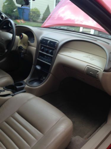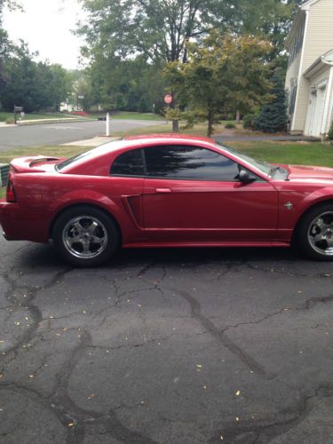 1999 Ford Mustang GT, 35th Anniverary Edition- Car is very clean and garage kept. Fully Loaded and in excellent condition. Fun to drive and totally streetable. Numbers on the dyno were 521rwhp/471ft/lb. Hate to sell, but need money to buy a house. Any questions feel free to ask. Car has many new parts and the engine in the car has only 2500 miles on it. Below is a list of what is done to the car and i'm sure im forgetting things as well. Engine- 4.6L Teksid Cobra Block bored .030", Forged Steel Crank, Rpm Forged Rods, Manley Forged Pistons. Trick Flow Twisted Wedge 44cc Cylinder Heads, Anderson Ford Motorsports Camshafts. Trick Flow Lifters, rockers, timing chains, tensioners & guides. ARP Head Studs. Professional Products Intake manifold, BBK 78mm throttle body. Professional Products dampener. FRPP high volume oil pump. Vortech S trim supercharger w/ Anderson power pipe. Thumpr Racing billet belt tensioner. Snow Performance Water/Methanol Injection. Has Lethal Performance Return Fuel system w/adjustable boost regulator. BBK fuel rails w/ 60lb injectors. Transmission/Drivetrain- Ford 4r70w transmission. Level 10 Valve body. Pro-Torque 2800 RPM stall torque convertor. Full Synthetic Fluid. Ford 8.8" Rear Differential w/ FRPP 3.73:1 Gears. Billet Moser cover w/girdle. Suspension- Eibach Sport Springs w/ progressive rate. Strange Engineering adjustable shocks. BBK fully welded sub-frame connectors. Fully adjustable camber/caster plates. Extras- American Racing wheels. Mickey Thompson Drag Radials on rear (500 miles on them) Hankook ventus tires on front (500 miles on them). Power stop drilled/slotted rotors and pads front & rear. New power steering rack. Borla Stainless exhaust, BBK off-road x-pipe. JBA shorty headers. Auto-meter gauges (boost, wideband air/fuel ratio, trans temp) FRPP A/C Delete. |