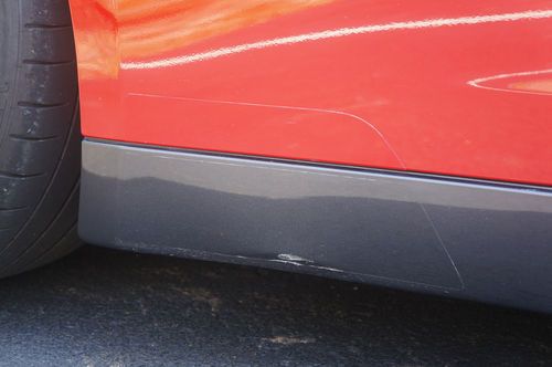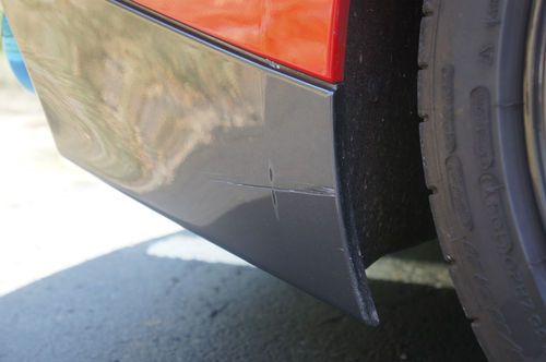 Lower rear valence has a scratch on it just behind the rear passenger tire and the clear bra was scuffed just in front of the same rear tire