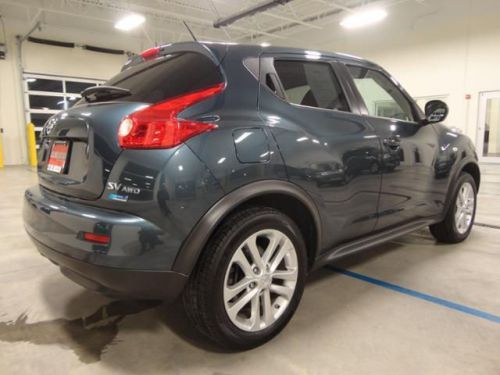 Extra Clean. WAS $19,992, $600 below NADA Retail!, FUEL EFFICIENT 30 MPG Hwy/25 MPG City! Sunroof, Bluetooth Connection, Auxiliary Audio Input, Keyless Start, CD Player, Satellite Radio, Turbo Charged, Alloy Wheels, Serviced here AND MORE!======KEY FEATURES INCLUDE: Sun/Moonroof, All Wheel Drive, Turbocharged, Satellite Radio, Auxiliary Audio Input, Bluetooth Connection, CD Player, Aluminum Wheels, Keyless Start. MP3 Player, Privacy Glass, Keyless Entry, Child Safety Locks, Steering Wheel Audio Controls. SV with Electric Blue exterior and Black interior features a 4 Cylinder Engine with 188 HP at 5600 RPM*. Serviced here. ======EXPERTS ARE SAYING: An excellent turbocharged four-cylinder engine provides good acceleration. Handling is carlike. -CarAndDriver.com. Great Gas Mileage: 30 MPG Hwy. ======PRICED TO MOVE: Reduced from $19, 992. This JUKE is priced $600 below NADA Retail. Approx. Original Base Sticker Price: $23, 800*. AutoCheck One Owner Dealer not responsible for pricing errors. Pricing analysis performed on 6/3/2014. Horsepower calculations based on trim engine configuration. Fuel economy calculations based on original manufacturer data for trim engine configuration. Please confirm the accuracy of the included equipment by calling us prior to purchase.