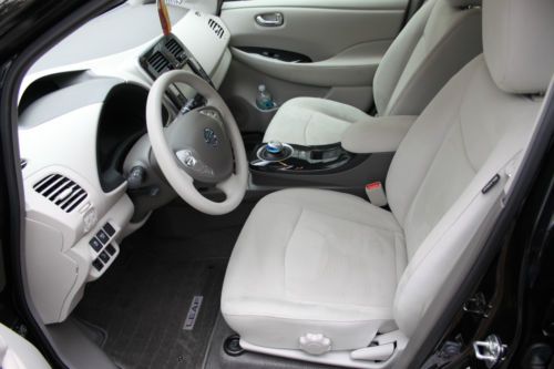 Hello. You are admiring our 2011 Nissan Leaf. It has a black exterior with no rust and tan cloth interior with no tears. My car insurance company lists this with SV trim, but it must have SL trim. This is because it includes the following equipment only available on the SL trim level: Rear Camera Garage Door Transmitter Front Fog Lights Fully Automatic Headlights Solar Panel Spoler (to charge accessory battery) Only 7,953 Miles (The Leaf is driven daily, so mileage will increase.) Automatic CVT (Constantly Variable Transmission) Nissan Level 1 120 Volt Charging Station Included Bosch Power Max EVSE Level 2 240 Volt Charging Station Included Factory Navigation System Everything Works To the best of our knowledge, there are no issues or problems with the LEAF. Thank you for taking the time to check out our LEAF. |
