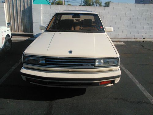 Up for auction is a very original, unrestored 1986 Nissan Maxima GX. All original paint with no body damage, a slight crease on the drivers door, will not show in picture. The interior is clean, no rips, no tears. All electronics work, except cruise control, not sure about the A/C, may just need a charge of freon. Two new front tyres, both axles just replaced, a new timing belt and waterpump being replaced. I believe that I am the third owner. Can send more specific pictures if needed. Would prefer payment through PayPal. $500.00 deposit, and balance due before delivery. I am willing to help with any shipping requiements