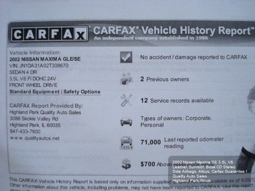 2002 Nissan Maxima Se Leather Auto Side Airbags Cd Heated Seats Well Maintained! on 2040-cars