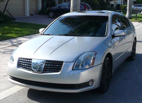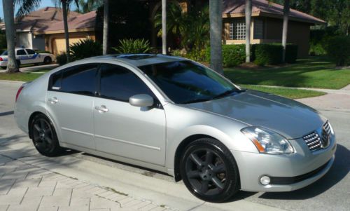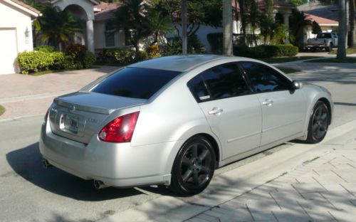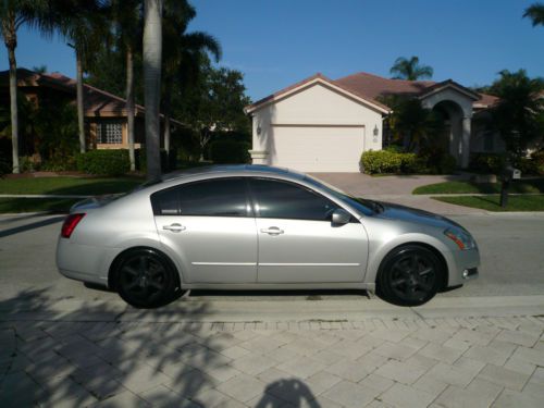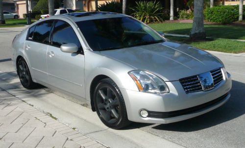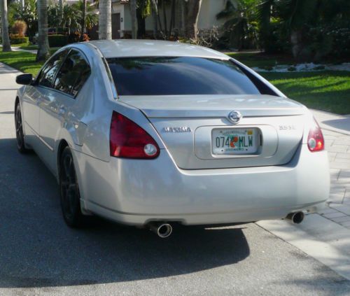 This is a listing for a 2006 Nissan Maxima SE with 104,067 miles. The car is silver with black leather and is in great condition. It drives beautiful and has a new set of tires on it. I have made some performance upgrades which include: Straight piping exhaust, Racingline Y-Pipe, and a NISMO Cold Air Intake. The wheels have been painted flat back with wheel paint. The side windows are all tinted. Some of the standard very nice features include: HID headlights, 6-Disc MP3 CD Player, Stock BOSE Sound System, Bluetooth, Sunroof, Power Seats, Power Locks, Power Mirrors, Heated Steering Wheel, Heated Seats, and Air Conditioning. The car has a couple of scratches and dings but nothing too serious. The car has always been maintained with oil changes performed every 3,000 miles. The car hasn't given me any problems and it is a pleasure to drive and own. I am in need of a truck and that is my reason for selling. Vehicle is being sold AS IS. A $500 non-refundable deposit must be made within 24hrs after sale via PayPal. Remaining balance must be in the form of cash or wired transfer. Buyer is responsible for all shipping costs. Pre-buy inspections are welcomed and encouraged. The vehicle is located in Fort Lauderdale, FL. You can contact me with any questions you may have at 954-295-4528.