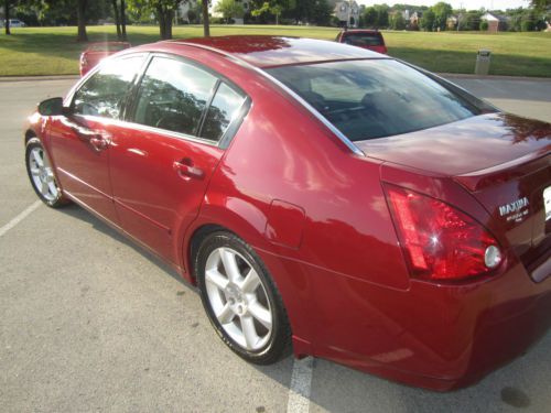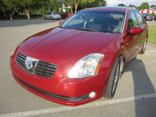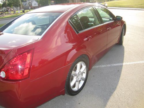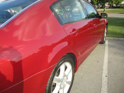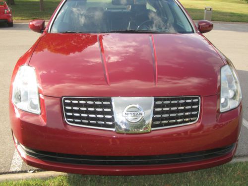 2006 Red Nissan Maxima, Original owner, purchased and garaged in Tennessee. Brand New tires, Newly Serviced, runs great!! This Maxima is loaded with beautiful black leather seats, sunroof, Navigation system, power doors, locks and seats. Clean title, No major mechanical or cosmetic damage. Take a look at the pictures, come by and check it out, take it for a test drive. A great driving experience!! Any questions, please ask. Happy Bidding.