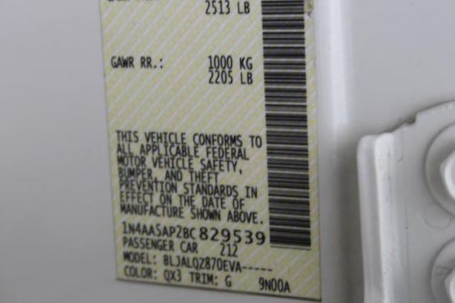 VIN (Vehicle Identification Number): 1N4AA5AP2BC829539