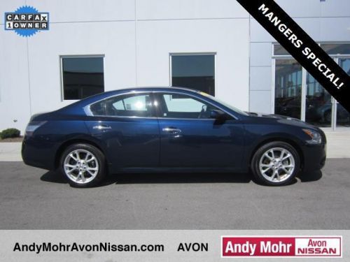 Clean CARFAX! Like NEW! ONE-OWNER! Navy Blue Metallic, Talk about an outstanding time! Barrels of fun! Fun Fun Fun to drive! You gotta love this good-looking and fun 2012 Nissan Maxima because it handles like a dream and keeps a smile on your face. It's the one! This spirited machine can turn the everyday driver into a gearhead as they experience a whole new kind of acceleration and exceptionally potent power. You will get MOHR for your money at Andy Mohr Avon Nissan! We have one of the largest pre-owned inventories in the state. Our pre-owned vehicles are hand-picked by the best in the business, have receive a comprehensive inspection and are ready for delivery today. Andy Mohr sets the standard for price, selection and service! Visit our new, state-of-the-art dealership today and see for yourself. We carry all makes and models such as Nissan,GMC,Buick,Chevy.