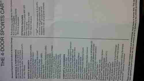 Options: Sunroof, Leather Seats, CD Player, Dual Panel moonroof w/power sunshades, rear window power sunshades, HID Xenon Headlights, Climate Controlled drivers seat, Heated front seats, Power tilt/telescopic steering column, Premium leather heated steering wheel, Paddle Shifters, Automatic entry/exit system, Driver-side memory (drivers seat, ouside mirrors,, Auto dimming outside mirror, heated outside mirror w/reverse titlt down, rear bucket seats, rear seat trunk pass-through, rear seat fold down armrest, Atlantic Cherry wood-tone trim, 7" color monitor w/Rear view monitor, USB connectivity, Blue tooth, Rear Spoiler