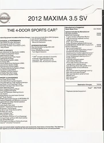 2012 Nissan Maxima Sv Sedan 4-door 3.5l on 2040-cars