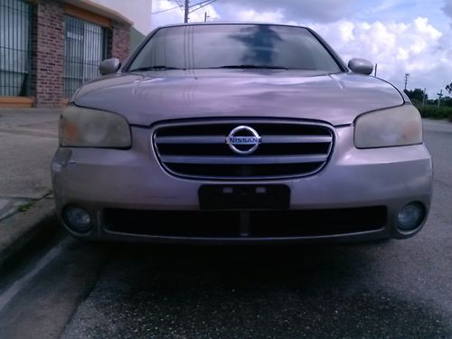 For grabs, a nice 2003 nissan maxima, has clean cloth interior tan, and tan/beige paint, has kenwood dual din dvd/mp3/cd/wma/ indash, ac and power accesories work great, has power everything, and a great driving car, , the bad needs cosmetic works as seen in the pictures otherwise overall a good car.