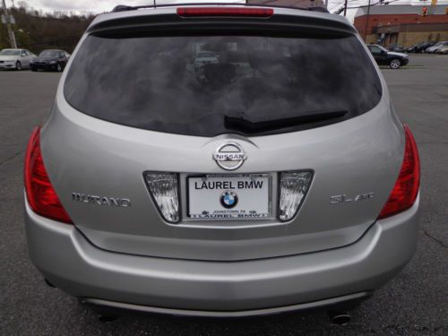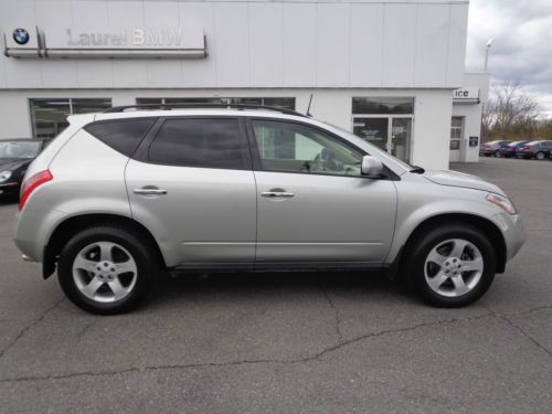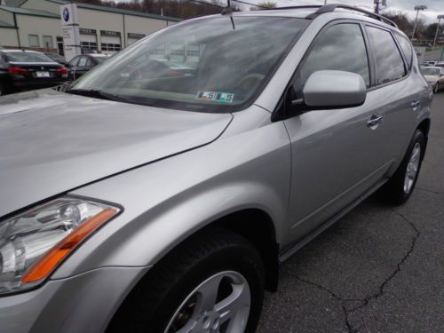 THANK YOU FOR VIEWING OUR BEAUTIFUL, 1-OWNER, 100% CARFAX CERTIFIED, WHICH WE SOLD BRAND NEW, 2004 NISSAN MURANO SL 3.5L V6 ALL WHEEL DRIVE IN SHEER SILVER PAINT WITH CAFE LATTE LEATHER SEATS AND ONLY 39,566 1-OWNER ORIGINAL MILES! WE ARE A BMW-NISSAN DEALERSHIP IN WESTERN PENNSYLVANIA AND WE ARE OFFERING THIS MURANO AT A SPECIAL, DISCOUNTED 'BUY IT NOW' PRICE ON EBAY FOR A VERY LIMITED TIME. PLEASE VIEW THE COMPLETE LISTING INCLUDING 24 PHOTOS ALONG WITH A DETAILED VEHICLE DESCRIPTION ALONG WITH THE CLEAN CARFAX REPORT. WE ALSO INCLUDED A 3 MINUTE YOUTUBE VIDEO SHOWING THE VEHICLE INSIDE & OUT. PLEASE CONTACT SCOTT LONG @ (866)226-0570 OR (814)659-1908 OR EMAIL TO LAUFORD@AOL.COM WITH ANY QUESTIONS. THANK YOU FOR VIEWING AND BE SURE TO VIEW ALL OF OUR EBAY LISTINGS ALONG WITH OUR 100% PERFECT FEEDBACK FROM PREVIOUS CUSTOMERS!