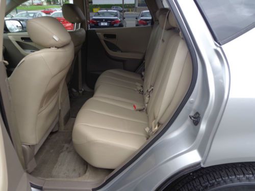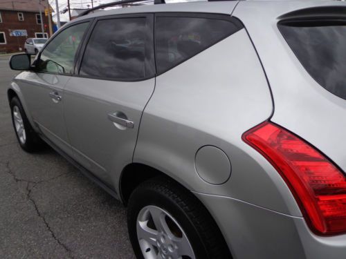 SINCE THE FACTORY WARRANTY HAS EXPIRED, WE ARE INCLUDING A FREE 3 MONTH / 3,000 MILE LIMITED POWERTRAIN WARRANTY AND IS VALID FROM THE PURCHASE DATE. WE ALREADY COMPLETED ALL RECOMMENDED SERVICE INCLUDING OUR 160 POINT INSPECTION AND COMPLETED A FRESH OIL CHANGE AND NEW STATE INSPECTION FOR THE NEW OWNER! CONDITION WOW, WHAT A SHARP, VERY CLEAN & BEAUTIFULLY MAINTAINED 2004 NISSAN MURANO SL 3.5L V6 AWD IN SHEER SILVER PAINT WITH 39,566 1-OWNER ORIGINAL MILES. IT HAS BEEN BEAUTIFULLY MAINTAINED AND INTERIOR IS CLEAN AND WAS A NON-SMOKER'S VEHICLE. BODY IS CLEAN AND FREE OF ANY MAJOR DINGS, SCRATCHES OR DENTS. TIRES ARE ABOUT 80%. I WOULD PERSONALLY RATE THIS NISSAN A 9 ON A 1-10 SCALE. I COULD ONLY FAULT THIS MURANO FOR HAVING A SOME STONE CHIPS AND A FEW LIGHT SCRATCHES AND I ALSO INCLUDED A 3 MINUTE VIDEO WALKAROUND OF THIS MURANO AND I ALWAYS POINT OUT ANY BLEMISHES I CAN FIND. THIS NISSAN IS A CLEAN TITLE VEHICLE WITH A CLEAN CARFAX WHICH WE INCLUDED WITH THIS LISTING AND THE ENTIRE HISTORY REPORT CAN BE EMAILED UPON REQUEST. OVERALL THIS IS A EXTREMELY CLEAN AND WELL MAINTAINED NISSAN. I PERSONALLY INSPECTED THE VEHICLE AND TEST DROVE THIS MURANO AND IT FEELS LIKE NEW. IF YOU ARE SEARCHING FOR A CLEAN, BEAUTIFULLY MAINTAINED NISSAN MURANO SL V6 AWD WITH ALL THE TOYS IN A GREAT COLOR, THIS IS YOUR NEW SUV! JUST SERVICED AND READY TO GO! BE SURE TO VIEW ALL 24 PHOTOS ALONG WITH FREE CARFAX REPORT! ONLY 39,566 1-OWNER ORIGINAL MILES! CARFAX SUMMARY