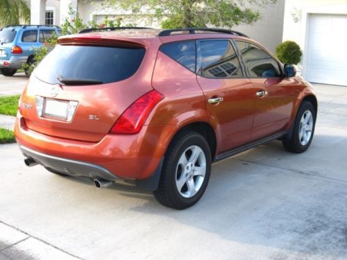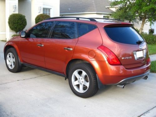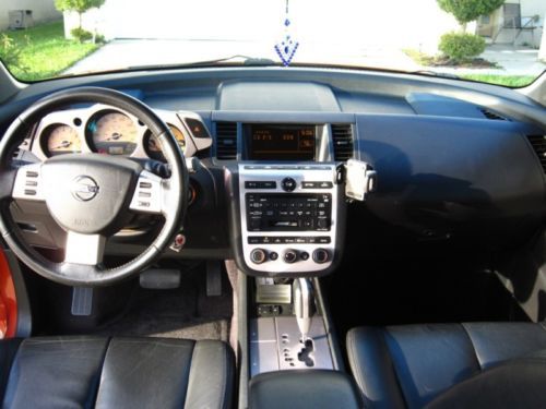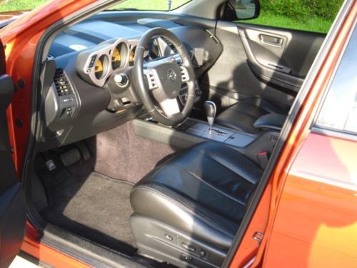 2004 Nissan Murano SL with ALL AVAILABLE OPTIONS except the navigation. Car is in very good condition with 107410 miles. Runs and drives perfect.Orange metallic exterior with black leather interior. Factory Bi-xenon headlights, power heated leather seats, driver memory seat, Home link garage door opener, power pedals, on-board computer, sunroof, BOSE sound system with 6 CD changer, iPod/iPhone integration kit, aluminum panel, tinted windows, ice cold AC with dual zone climate control, rear cargo mat, 18 inch rims and almost new Firestone tires. No accidents, no paintwork, no rust, clean Carfax and Autocheck report. For a fast reply call or text 774-295-0002.
