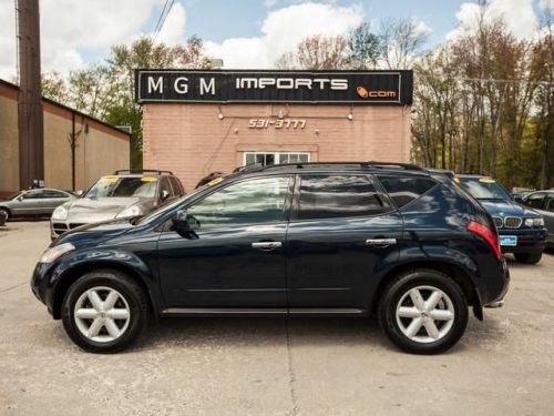***WWW.MGMIMPORTS.COM*** 2005 Nissan Murano SL, A MUST SEE, IN GREAT SHAPE IN/OUT, ALL WHEEL DRIVE, AUTOMATIC, 3.5L V-6 ENGINE, GETS 20/24 MPG, FULLY LOADED, LEATHER INTERIOR, SUNROOF, HEATED SEATS, BOSE SOUND SYSTEM, ALL POWER OPTIONS, ABS, ALLOY WHEELS, TILT WHEEL, CRUISE CONTROL, STEERING WHEEL CONTROLS, CD CHANGER IN DASH, TAPE PLAYER, REAR WIPER, REAR DEFROST, LUGGAGE RACK, GARAGE DOOR OPENER, FOG LIGHTS, FRONT/SIDE AIRBAGS, ALARM, KEYLESS ENTRY, PRICED FOR A QUICK SALE -- MOST OF OUR VEHICLES ARE HIGH QUALITY, HAND PICKED, ONE OWNER IN A LIKE NEW CONDITION WITH A CLEAN CAR FAX. ALL ARE FULLY INSPECTED, SERVICED AND RECONDITIONED, THOSE THAT DO NOT MEET OUR MECHANICAL CRITERIA ARE NOT OFFERED FOR SALE. MOST OF OUR VEHICLES ARE COVERED WITH THE MANUFACTURER WARRANTY OR A 3 MONTHS/4500 MILE WARRANTY. FINANCING IS AVAILABLE AND TRADES ARE ALWAYS WELCOMED. FOR SIMILAR GREAT DEALS PLEASE VISIT OUR WEBSITE http://www.mgmimports.com Thanks so much for checking out MGM Imports in your car hunt! We're proud to sell the very best used car stock in the Cincinnati area. Our welcoming, very low-hassle attitude continues to be the number one appeal of our company. We carry all luxury used cars, imports, and high end cars on our lot. No matter where in Cincinnati you are MGM Imports has the best used car inventory for you.