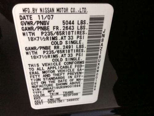 VIN (Vehicle Identification Number): JN8AZ18UX9W001694