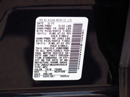 VIN (Vehicle Identification Number): JN8AZ1MU4AW009929