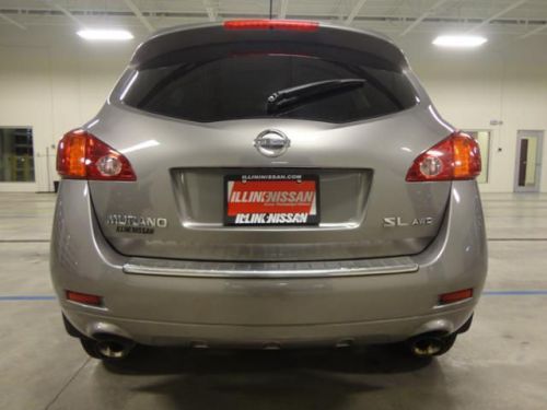 $1,000 below NADA Retail! Extra Clean. Rear A/C, All Wheel Drive, CD Changer, Multi-Zone A/C, Keyless Start, Overhead Airbag, [J01] MOONROOF PKG, [X01] LEATHER PKG, [P01] PREMIUM PKG, Alloy Wheels, PLATINUM GRAPHITE SEE MORE!======KEY FEATURES INCLUDE: All Wheel Drive, Rear A/C, CD Changer, Aluminum Wheels, Keyless Start, Multi-Zone A/C. MP3 Player, Privacy Glass, Keyless Entry, Child Safety Locks, Steering Wheel Audio Controls. ======OPTION PACKAGES: LEATHER PKG: leather seating surfaces, 4-way pwr passenger seat, pwr driver lumbar support, heated front seats, MOONROOF PKG: dual panel moonroof, sliding sunshade, PREMIUM PKG: Bose premium audio system w/(9) speakers & (2) subwoofers, XM satellite radio, aux audio/video inputs behind center console, 7 QVGA color display, rear view monitor, auto-dimming rear view mirror w/compass, HomeLink universal home remote, radio data system (RDS), speed-sensitive volume, PLATINUM GRAPHITE. SL with Platinum Graphite exterior and Black interior features a V6 Cylinder Engine with 265 HP at 6000 RPM*. Serviced here, Non-Smoker vehicle, Originally bought here, Autocheck One Owner. ======EXPERTS REPORT: Edmunds.com explains If you dig its avant garde styling, you'll find the Nissan Murano to be a class-leading crossover SUV.. 4 Star Driver Front Crash Rating. 5 Star Driver Side Crash Rating. ======EXCELLENT VALUE: This Murano is priced $1, 000 below NADA Retail. Approx. Original Base Sticker Price: $32, 100*. Pricing analysis performed on 5/8/2014. Horsepower calculations based on trim engine configuration. Please confirm the accuracy of the included equipment by calling us prior to purchase.