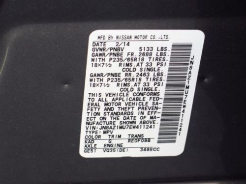 VIN (Vehicle Identification Number): JN8AZ1MU7EW411241