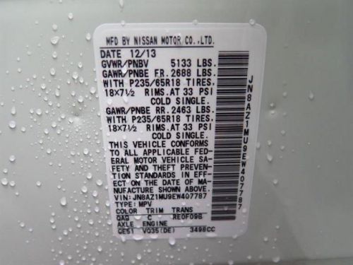 VIN (Vehicle Identification Number): JN8AZ1MU9EW407787