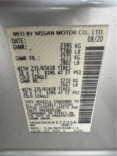 VIN (Vehicle Identification Number): 5N1AZ2AS3LN172256
