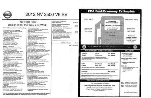 2012 NISSAN NV 2500 SV CARGO VAN HIGH ROOF 4.0L V6 69K AUTO TRANS EXTRAS USED. Van is financed but we can get title prior to auction end if requested or within a few days of us paying off after auction end. I have attached the original sales sheet as a pic also, please let me know if you have any questions or want to arrange a time to come see. It is located in Jamestown, NC and can be seen Monday-Friday from 8-5 or may be able to make other arrangements. Will not be available for viewing from July 3rd to July 6th (Holiday weekend). Check out my other items! LOCAL PICKUP ONLY - or you handle shipping from our location. Cash at pickup or money transfer - paypal NOT accepted on this auction. NO PERSONAL CHECKS. Please view my other auctions. E-mail with questions BEFORE bidding. Please do not bid if you do not plan on buying. ALL non-paying bidders will be turned into e-bay as such. I leave feedback when I receive payment. Please leave feedback when you receive your items. I describe auctions to the best of my ability, please refer to pictures also for descriptions. All items sold AS IS, no guarantee or warranty. Thanks for looking at my auctions. Happy E-Baying! Please do not let your children, dog, cat, or some stranger off of the street play with your e-bay account or bid for you. Please realize that what you see in the picture and what the description says is what you are getting, nothing more or nothing less. Please note that I do not hold your feedback hostage until you leave for me. I post feedback when paid, since my feedback for you is based on your payment. I have sold to buyers who want new items for used item prices, want everything in the background of the pic (but Fed-Ex does not ship the kid or the dogs), or EXPECT to get more. Please remember e-bay is not a GAME, when you bid and do not pay, you cost the seller money, time, and true bidders the chance. Sorry for this spill, but it is becoming increasingly necessary. |
