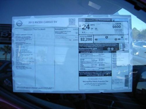 This vehicle has MSRP of $22,075, SAVE AT THE PUMP!!! 25 MPG Hwy* As much as it alters the road, this terrific MiniVan transforms its driver*** Awesome! OPTIONAL EQUIPMENT INCLUDES: Splash Guards (Set of 4), All Season Floor Mats... We have Excellent selection of new Nissan NV200 in stock. Please be sure to contact VICTOR, Internet Sales Manager for Professional and No Pressure purchase, additional information and/or pricing on any model Nissan that you are interested in. **** Our goal is to provide the same rich, satisfying experience online that you will receive in our dealership. We pride ourselves on delivering the exceptional treatment customers expect. **** PLEASE Contact - VICTOR Internet Sales Manager for details at 888-505-5074 Thank you for visiting our website.