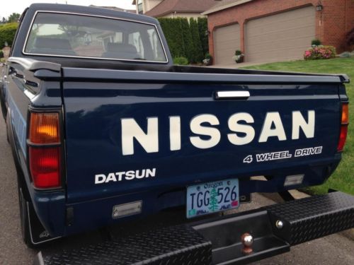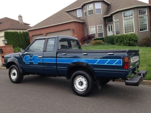 I'm selling a very nice 1984 Nissan 4X4 king cab that looks like new, body paint is absolutely gorgeous condition no dings or dents or paint flaws always garage kept since new original four-wheel-drive stickers look like you also, interior in beautiful condition no rips or tears non-smoker no pets carpets look great for the age very clean, fully rebuilt 4 cylinder motor brand new head, great shifting 5 speed manual transmission very smooth going into all the gears, lots of new parts, new radiator, new battery, all new hoses, fresh tune up will all new wires, all fresh fluids, no leaks super clean motor compartment, The body on this truck is very clean, 99.98% Rust Free. Here in the Pacific Northwest, we are known for Cool Summers, Mild Winters and we don't salt the roads, which produces vehicles like this if cared for. Again it has original paint, and it does have a nice gloss. There are various small chips, Interior is very clean, NON Smoker, everything works inside, the heater. The headliner is in very nice shape, the seats are in good condition, see pictures. The carpet is original, I just had the front ones cleaned, I actually took the seat out and the front carpet, rear one under-seat was already pretty clean. The carpet is original and in excellent condition. Under the carpet, the floors were very clean, original paint, no rust, The drive train in this truck is very good. Z24 engine, runs like a top, these are great motors, 8 spark plugs, Z motor with lots of spunk for a vintage truck. Users with zero feedback please do not bid until contact with me deposit required right after auction, if you have any questions please send me email with your phone number & i will contact you ASAP, please no questions through emails just phone number & I will be more than happy to answer any questions you have.