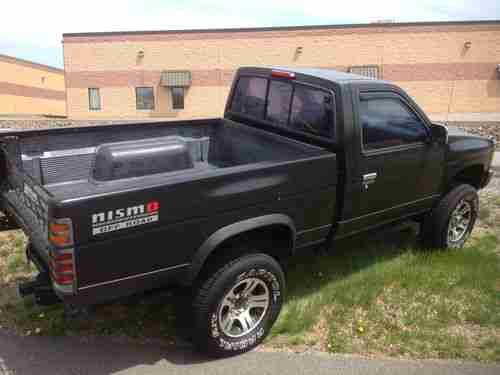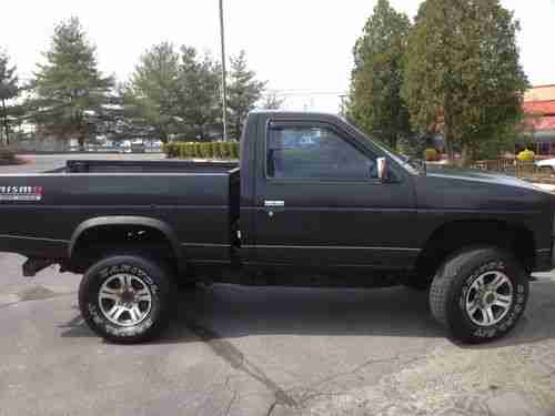 1996 Nissan D21 only 100,000 miles, New fuel pump, fuel injectors, plugs, wires, cap , rotor, fuel filer, rear brake drums, brake lines. Truck was totally de-rusted. new fenders, front header panel,front bumper, replaced bed (bed has some damage on drivers side see pictures). Truck was stripped down to the frame and totally derusted (see pictures). After rust was removed I primed and undercoated everything.Body was painted in a black primer (looks better from a distance). The paint is not all that great. New owner may want to repaint it if they want the body to be as good as the frame and the motor and trans. Runs great and clutch is good. I put a spray on bedliner and put the bed liner over it. I also put the spray on bedliner along the bottom of the panels (to keep from chipping and rusting).Truck does have air conditioning but when I put the front header on I broke the bolt holding the line to the condenser. It didn't seal properly and the 134a leaked out. It may need a condenser if you want to repair the ac. It has a 4' body lift and the 4wd works great. Truck would be a great work/off road vehicle. Again it's not pretty but it is solid and it runs great. I also have not had it inspected so the new owner would have to have it towed because it is not fully street legal. Any questions please let me know.