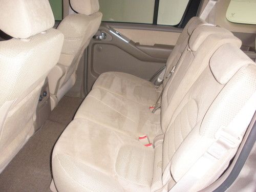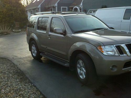 ABSOLUTELY GORGEOUS 2008 NISSAN PATHFINDER 2WD SE. NO ACCIDENTS, ONLY one OWNER, ALWAYS GARAGED AND VERY WELL MAINTAINED, YOU WILL JUST LOVE THIS PATHFINDER IT IS PRISTINE. THE INTERIOR IS PERFECT AND IN EXCELLENT CONDITION, NON-SMOKER, NO STAINS OR ODORS, IT IS LIKE NEW. THE EXTERIOR IS ALSO IN EXCELLENT CONDITION, AND THE FACTORY PAINT LOOKS AND SHINES PERFECT, NO DENTS, DINGS, NOT HARDLY A SPOT ON IT ANYWHERE, SEE PICTURES. THIS VEHICLE HAS DUAL AC/HEATING SYSTEM FOR CROWDED FAMILY WITH KIDS, THEY CAN HAVE FUN AT THIRD ROW SEAT. THE TIRES ARE NEW (FACTORY RECOMMENDED SIZES) ALL SEASON RADIALS, WITH FACTORY 17" NISSAN WHEELS ARE AS NICE AS THEY CAN GET, NOT TO FORGET ALL 4 WHEELS BRAKES ARE NEW. YOU WILL ENJOY THE SOUND QUALITY OF BOSE AM/FM CD PLAYER ANS SATELLITE STEREO SYSTEM. I HAVE PUT A LOW RESERVE ON IT. BID WITH CONFIDENCE. FOR ANY QUESTION PLEASE CALL Frank @ 817-528-1498 OR 301-247-4075