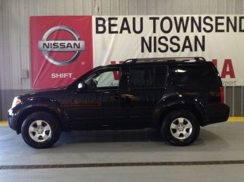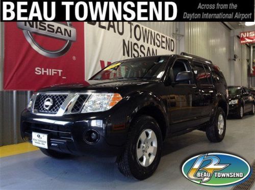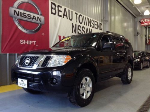 Pathfinder S, 4D Sport Utility, 4.0L V6 DOHC, 5-Speed Automatic, 4WD, Super Black, Graphite w/Cloth Seat Trim, ABS brakes, Alloy wheels, Clean Vehicle History Report, Electronic Stability Control, Illuminated entry, Low tire pressure warning, One Owner Vehicle History Report, Remote keyless entry, Tilt steering wheel, and Traction control. This superb 2011 Nissan Pathfinder is the rare family vehicle you have been hunting for. There is no way you can have more of a ball in a ride for this amount of money. FREE MAINTENANCE! Get scheduled maintenance for 2 years or 24,000 miles on Certified Pre-Owned Nissans. Exclusive online offer. Contact us through Cars.com about this vehicle to confirm availability and receive your maintenance certificate. Certificate must be presented at time of purchase for BTnissan Loyalty Plus Maintenance Program enrollment.