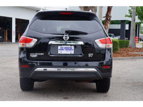 This black 2013 Nissan Pathfinder SV might be just the SUV for you. It comes with a 3.50 liter 6 CYL. engine. This SUV has only had one previous owner! Stay safe with this SUV's 4 out of 5 star crash test rating. Even the passengers in the back seat will ride in comfort thanks to the rear air control. Spoiler alert! This SUV has a rear spoiler, so you can look and feel like an all-star. According to a review from CarsDirect, What the new Pathfinder has going for it is what feels like acres of room. Could this be the vehicle for you? Give us a call today and find out! Special Internet Pricing ONLY available through the INTERNET DEPARTMENT. CALL 888-476-5969 TODAY AND ASK FOR ONE OF OUR AUTO ADVISORS.