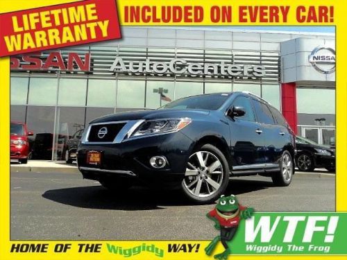This is a REAL price on a REAL car! We Buy, Sell, Ship and Finance NATIONWIDE!PLATINUM PREMIUM PACKAGE INCLUDED!! All our New Nissans come with a LIFETIME Warranty, a 30 day 3000 mile money back guarantee and $100 in rewards credit! NO dealer in the country does what we do! No vehicles are held, all sales are first come first buy bases. AutoCenters reserves the right to end any auction or change a price without prior notice. See our complete inventory at AutoCentersNissan.com. Price includes current Nissan customer cash, $600 college graduate discount, $500 additional trade assistance, $500 NMAC Captive Cash with approved credit and ALL Active Military personnel saves an additional $1,000!!! For additional information please contact AutoCenters Nissan at 888-455-0302 or visit us online at www.autocentersnissan.com.The 2014 Nissan Pathfinder is an incredible 7-passenger crossover that features a sporty look with plenty of attitude and space to go around. It has luxurious body sculpting that starts with the tapered front, with its chrome-framed grille and dramatic head lights, and then glides all the way back. It has notably large windows as well, which helps the driver with visibility. For 2014, the Pathfinder is not only available as a gasoline vehicle, but a new Hybrid as well. The gas models include the base level S trim, the SV and SL, and the top-level Platinum. They share a 3.5-liter, 24-valve, V6 engine with 260 Horsepower, which is paired with the incredible Xtronic Continuously Variable Transmission. The Hybrid model comes in three trims: SV, SL and Platinum. It has a SuperCharged 2.5-liter 4-cylinder engine and an electric motor with an Intelligent Dual Clutch System. It has a lithium-ion battery, and gets 250 Horsepower and 243 lb-ft of Torque. Plus, it features electrically driven regenerative brakes. In addition, the All-Mode 4x4-i intuitive 4WD system is an available option for gas as well as hybrid models. The Base S trim comes very generously equipp