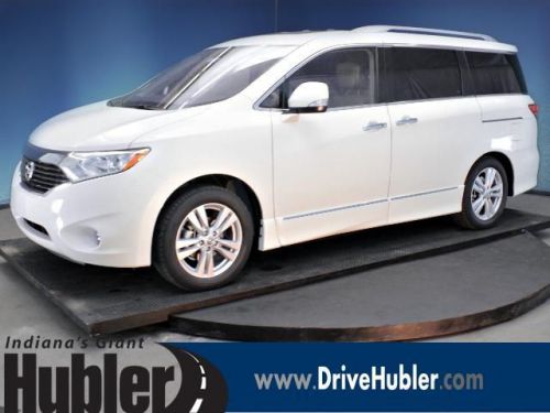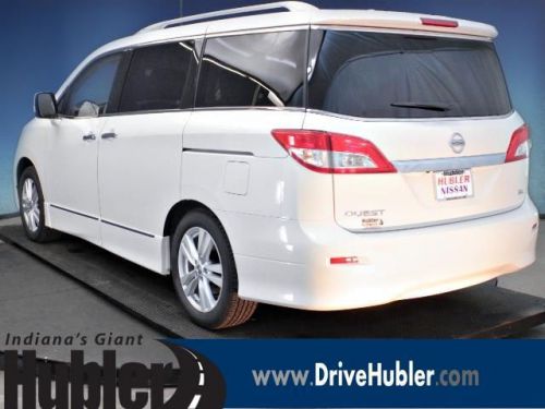 3rd Row Seat, Heated Leather Seats, Power Liftgate, Overhead Airbag, Rear A/C, Back-Up Camera, [H02] BOSE PKG, [J01] DUAL PANEL MOONROOF. White Pearl exterior and Gray interior, SL trim. FUEL EFFICIENT 25 MPG Hwy/19 MPG City! CLICK NOW!======KEY FEATURES INCLUDE: Leather Seats, 3rd Row Seat, Rear Bucket Seats, Power Liftgate, Rear A/C, Heated Front Seat(s), Back-Up Camera, Satellite Radio, Bluetooth Connection, Keyless Start, Multi-Zone A/C, Power Fourth Passenger Door. Rear Spoiler, MP3 Player, Aluminum Wheels, Privacy Glass. ======OPTION PACKAGES: DVD ENTERTAINMENT SYSTEM: A/V center w/DVD/CD player, (2) wireless headphones, remote control, rear 11 VGA display, dash mounted 7 color QVGA display, flash memory, 120V (150W) inverter, aux audio/video input jack in console, driver concentration switch for rear entertainment, DUAL PANEL MOONROOF, BOSE PKG: Bose audio system w/(12) speakers & subwoofer, CARPETED FLOOR MATS FOR 1ST, 2ND, 3RD ROWS, CARGO NET, WHITE PEARL, GRAY, SEAT TRIM. SL with White Pearl exterior and Gray interior features a V6 Cylinder Engine with 260 HP at 6000 RPM*. Brand New Tires. ======EXPERTS RAVE: Edmunds.com's review says Often overlooked, the 2013 Nissan Quest is a great choice for a minivan.. Great Gas Mileage: 25 MPG Hwy. ======MORE ABOUT US: After more than 50 years in business, The Hubler Auto Group, through the power of ten central Indiana locations, has literally sold hundreds of thousands of vehicles and is one of the oldest and most prolific auto dealers in the State employing 550 people. The Hubler Auto Group can claim the title for selling more G.M. vehicles in the State of Indiana than any other dealer or dealer group Pricing analysis performed on 5/9/2014. Horsepower calculations based on trim engine configuration. Fuel economy calculations based on original manufacturer data for trim engine configuration. Please confirm the accuracy of the included equipment by calling us prior to purchase. Hubler Nissan is committed to providing the finest automotive ownership experience through superior customer service. Let us make you a "Customer for life". We have 99% Guaranteed Credit Approval! For more details or to schedule an appointment, call us at 888-548-9398.