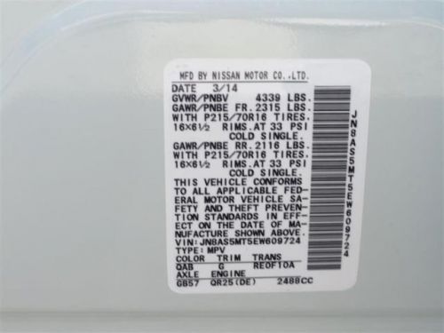 VIN (Vehicle Identification Number): JN8AS5MT5EW609724